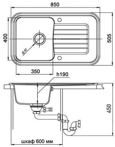 В комплекте: мойка, сифон, шаблон, крепеж.