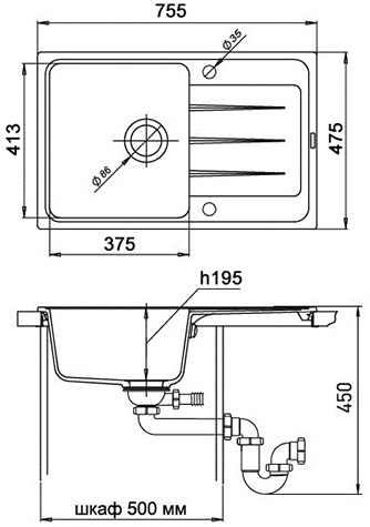 В комплекте: мойка, сифон, шаблон, крепеж.