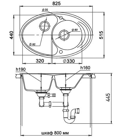 - Размеры чаш: 320x440x190 мм, 330x330x160 мм.