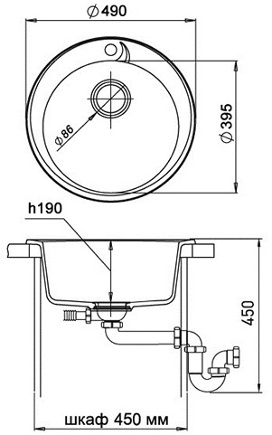 Мойка кухонная врезная Ewigstein Rund 45 иней.