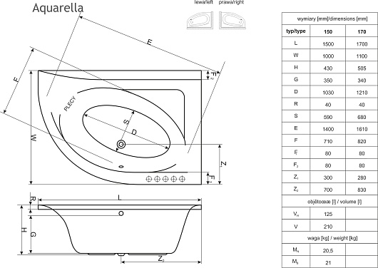 Excellent Акриловая ванна Aquarella 170х110 правая