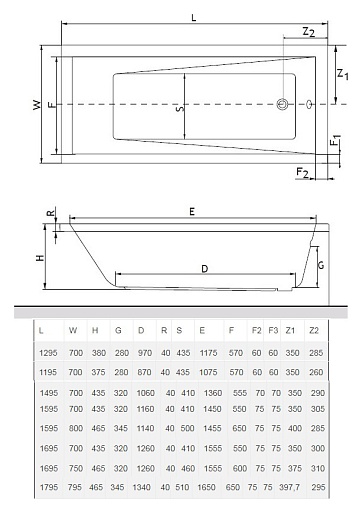 - Акриловая ванна из 100% акрилового листа