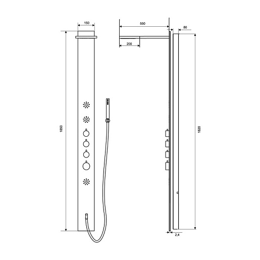 - ШхВхД: 150х1850х550 мм