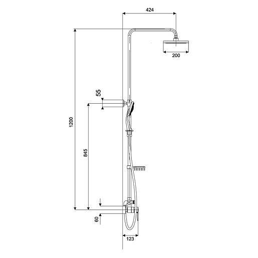 Смеситель, лейка, шланг, штанга, верхний душ, крепление