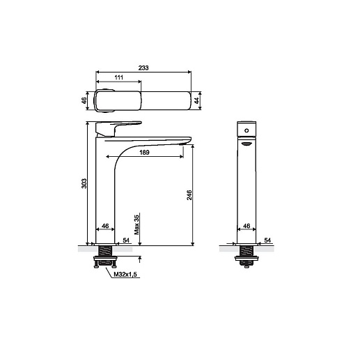 Высота излива, мм: