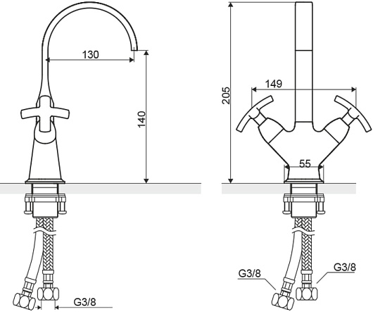 - двухвентильный смеситель для раковины