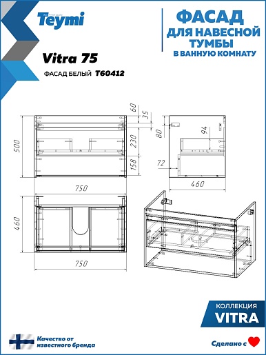 Фасад для тумбы Teymi Vitra 75 белый - арт. T60412.