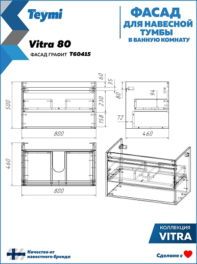 Фасад для тумбы Teymi Vitra 80 графит - арт. T60415.