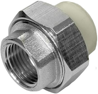 - комбинированый фитинг (американка) из финского высокомолекулярного статического сополимера полипропилена Borealis RA - 130 Е (PPR-100)