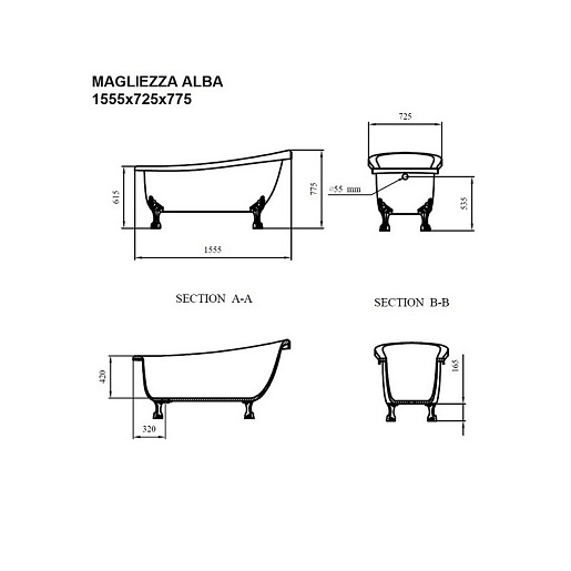 Фэма Акриловая ванна "Alba 155", ножки бронза, покрытие RAL матовое