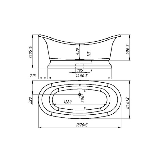 Размеры: ДхШхВхГ: 1870±5x840±2x600(800)±5/430 мм