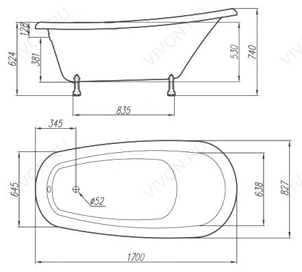 Фэма Ванна из литьевого мрамора Салерно (ножки бронза)