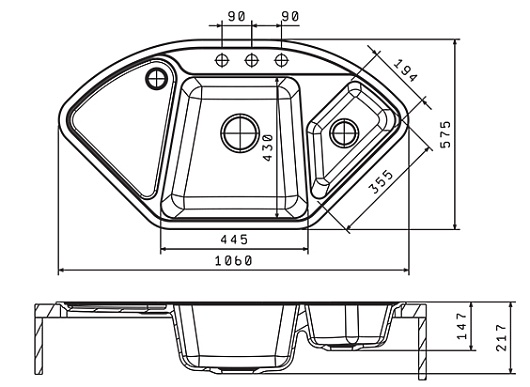 - материал: искусственный гранит