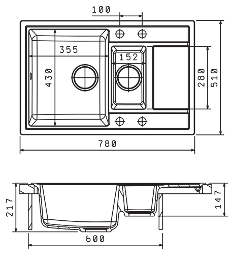 Florentina Мойка гранитная Липси 780К с крылом антрацит