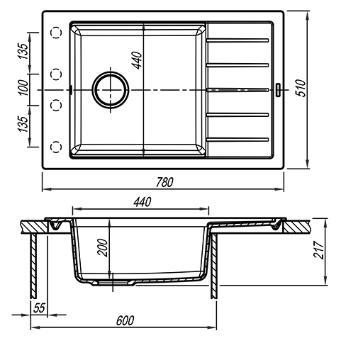 - материал: искусственный гранит