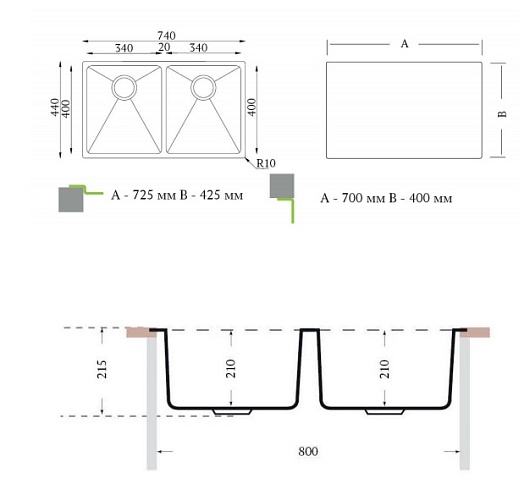 - комплектация: отводная арматура, крепежи, уплотнительная лента