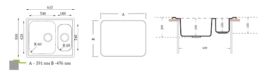 - размер чаши (ШхВхГ): 340х190х420 мм, 180х130х420 мм