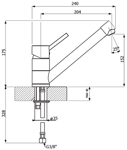 - установочный диаметр отверстия для монтажа - 35 мм