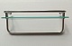 - Стеклянная полочка с ограничителем и вешалкой для банных аксессуаров.