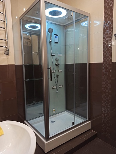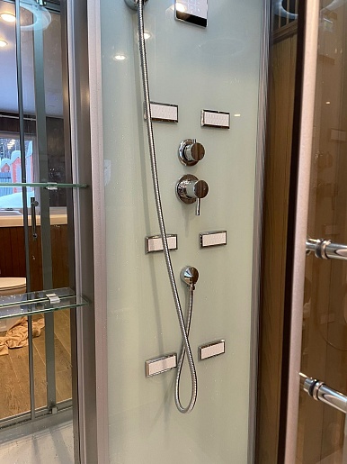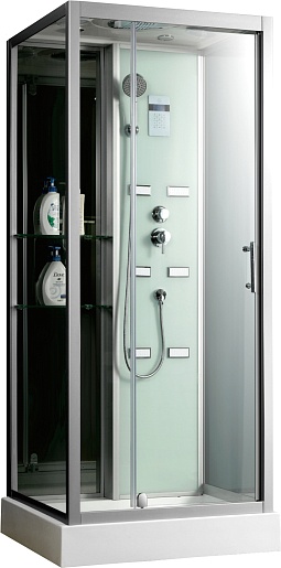 - Стекло: дверца - прозрачная, задняя стенка - белое, зеркальное.