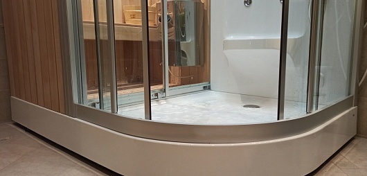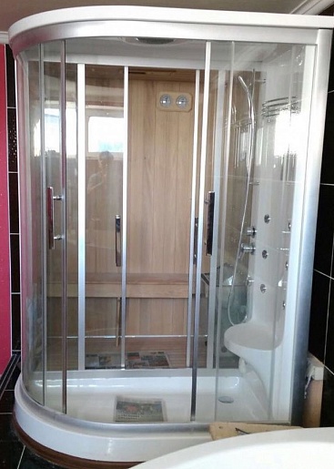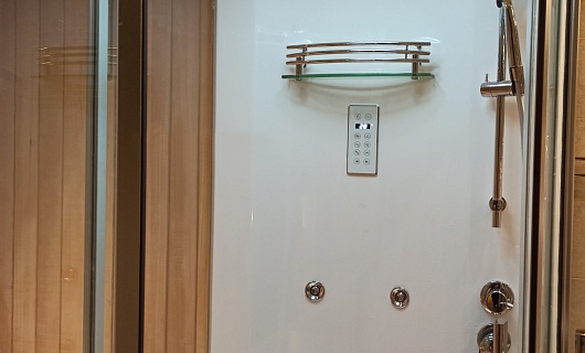 - Дверь между сауной и душем: раздвижная.