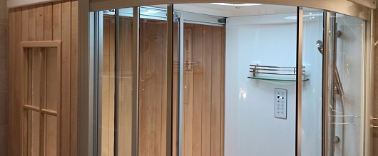 - Двери в душевой : раздвижные (с магнитами металлическими).