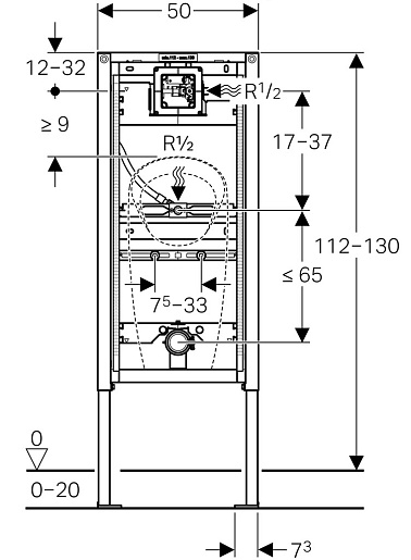 - Для встраивания в перегородку систем Geberit Duofix по высоте рамы или помещения