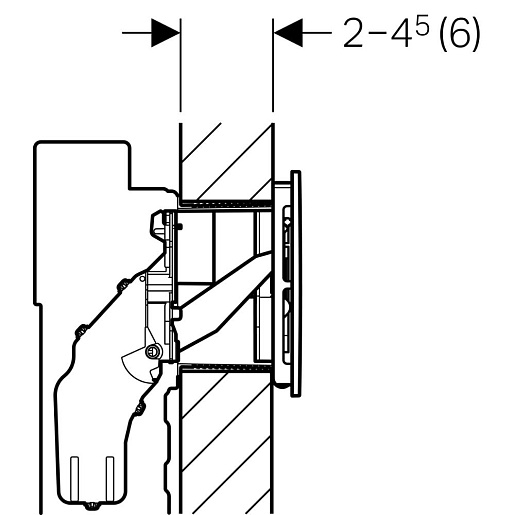 - Для монтажа в стены с толщиной облицовки максимум 6 см (с удлинительным комплектом)