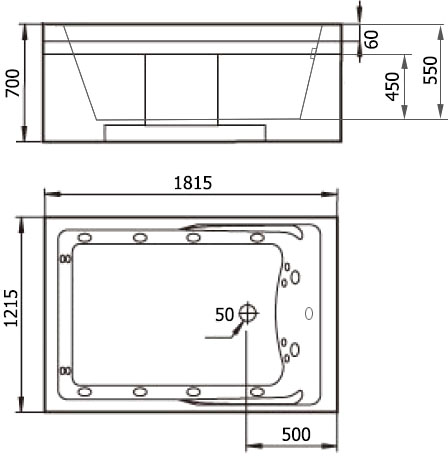 Комплектация: ванна, каркас, слив-перелив, смеситель, душевая лейка, подголовник, ручки.