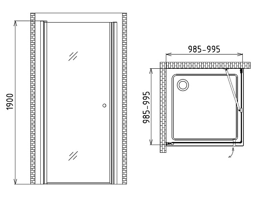 - одна распашная дверь