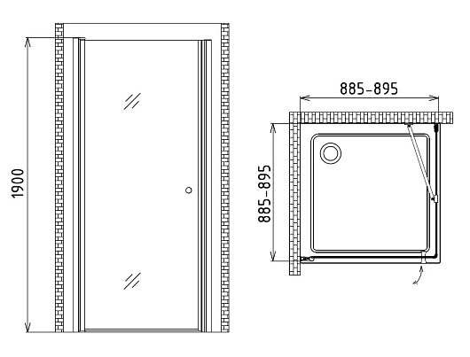 - одна распашная дверь