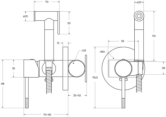 Гигиенический душ со встраиваемым смесителем Cezares Relax RELAX-DIF-BORO.