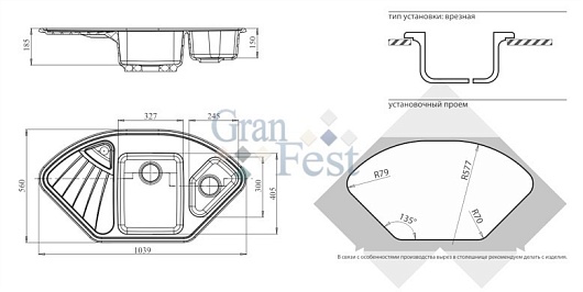 Granfest Мойка кухонная Corner GF-C1040E Розовый угловая