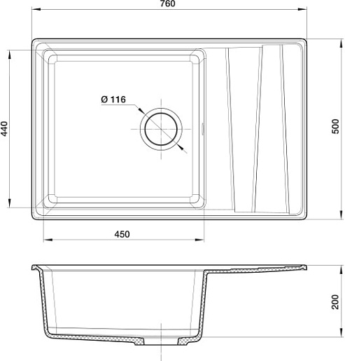 Мойка кухонная Granfest GF-LV-760L черная.