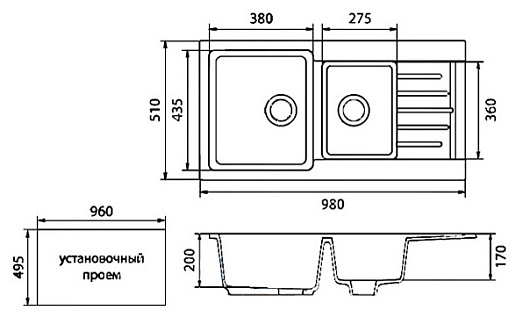 - комплектация: сифон, сливная арматура с нержавеющим клапаном