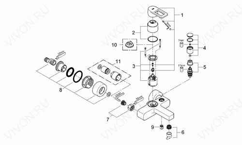 - отвод для душа снизу 1/2" со встроенным обратным клапаном