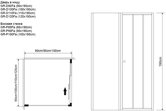 Душевая дверь в нишу Grossman Falcon 110x190 GR-D110 - GR-D110Fa.