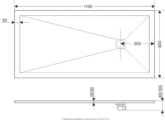 - Технический уклон поддона для стока воды.