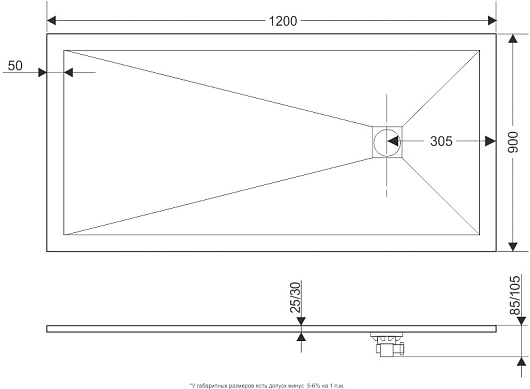 - Технический уклон поддона для стока воды.