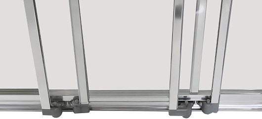 - Раздвижные дверцы: одно неподвижное стекло, две сдвижные панели.