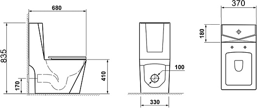 - Размер (ШxВxГ): 370 х 835 x 680 мм.