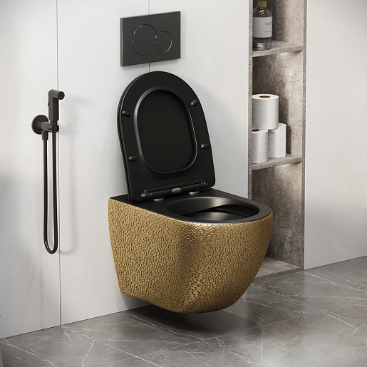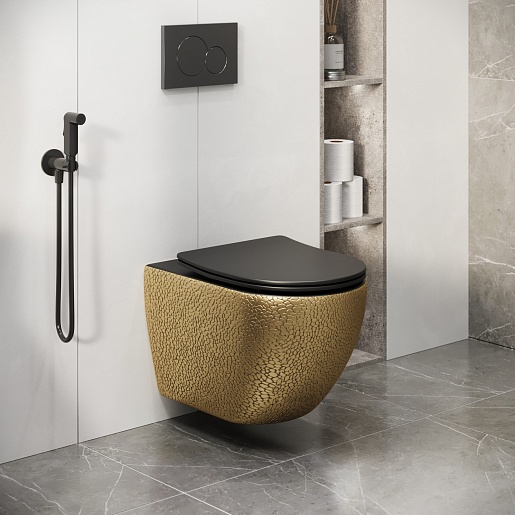 Grossman Унитаз подвесной Color GR-4411GBLS золото/черный с текстурой крокодила