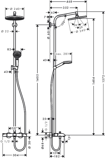 - размер душевого диска: 240 мм