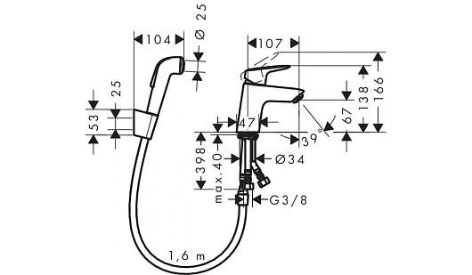 Hansgrohe Смеситель Logis 71290000 для раковины с гигиеническим душем