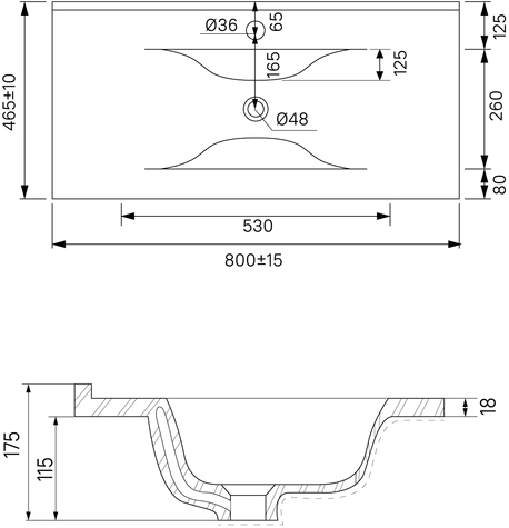 - Фарфоровая раковина со слив-переливом и отверстием под смеситель.