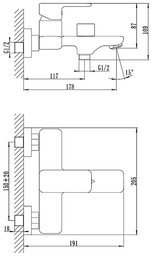 - Настенный монтаж на два отверстия