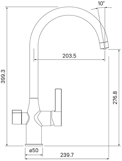- Подача фильтрованной воды нажатием кнопки на изливе.