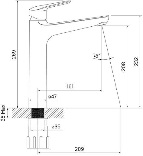 Высота излива, мм: