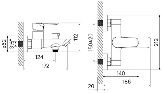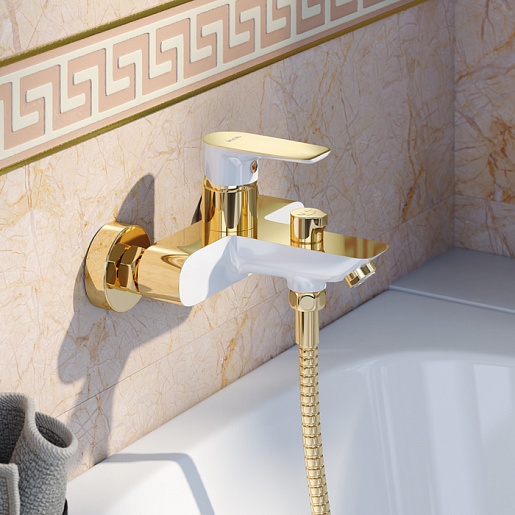 Комплектация: смеситель, эксцентрик (2 шт.), душевая лейка, шланг, держатель лейки.