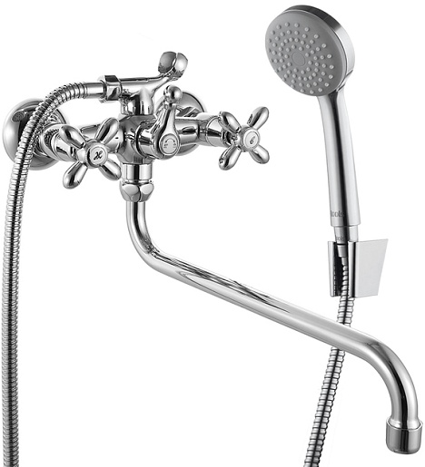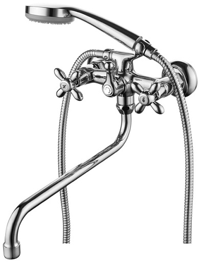 Комплектация: смеситель, душевая лейка, шланг, эксцентрик (2 шт.).